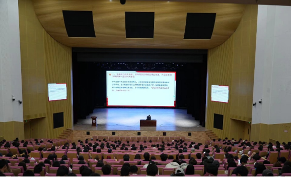 本次讲座以“从小平同志领导两弹一星国防尖端科技事业历史贡献看新时代科技自立自强”为主题,由校长助理刘隽教授担任主讲人,全校2024级全体学生到场聆听。