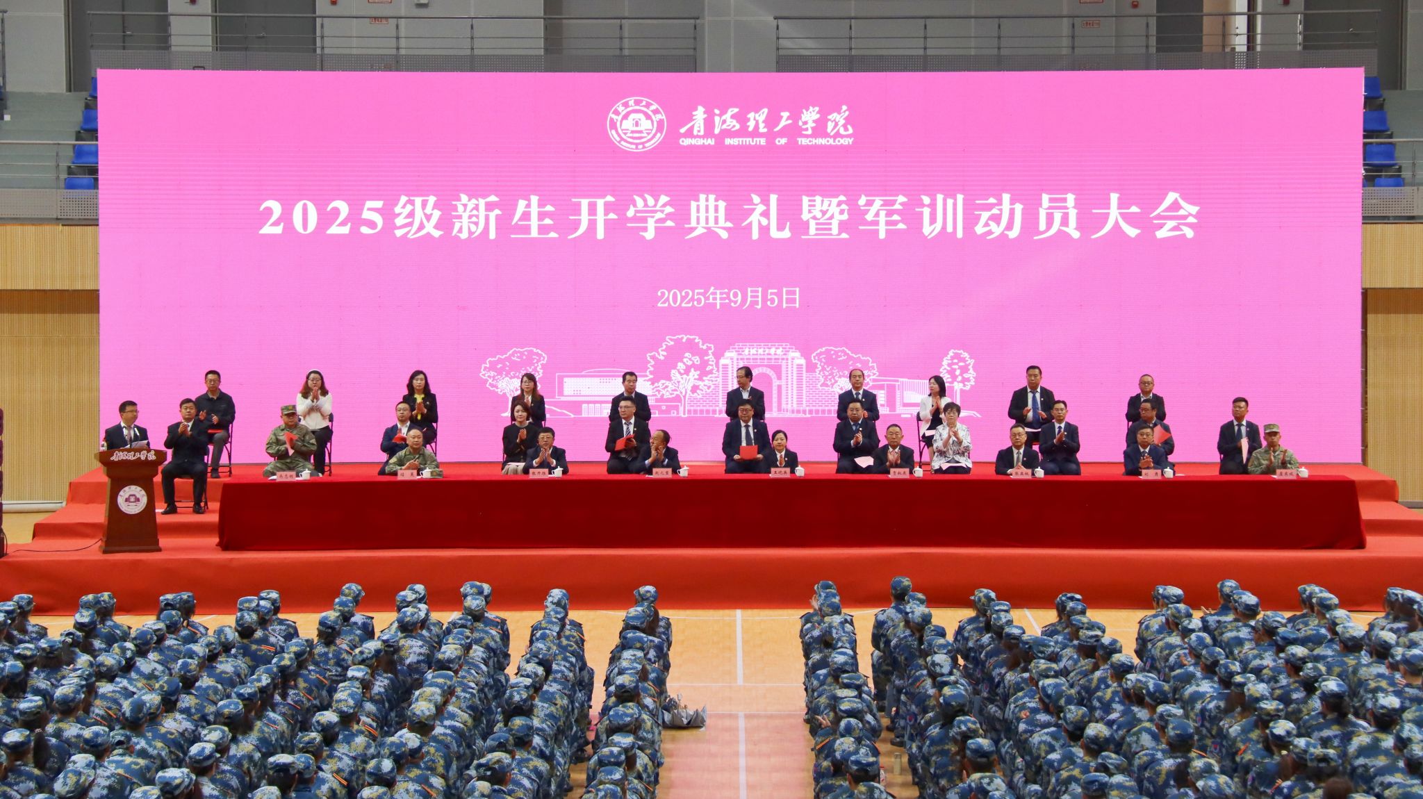 9月5日上午,我校2025级新生开学典礼暨军训动员大会在体育运动中心隆重举行。校领导王晓英、贾叙东、赵之重、张亚权、张开胜、校长助理刘隽等出席活动,学校部门和学院负责人、军训教官、教师代表、家长代表共同见证1440名新生开启大学新征程的重要时刻。大会由副校长马志明主持。
