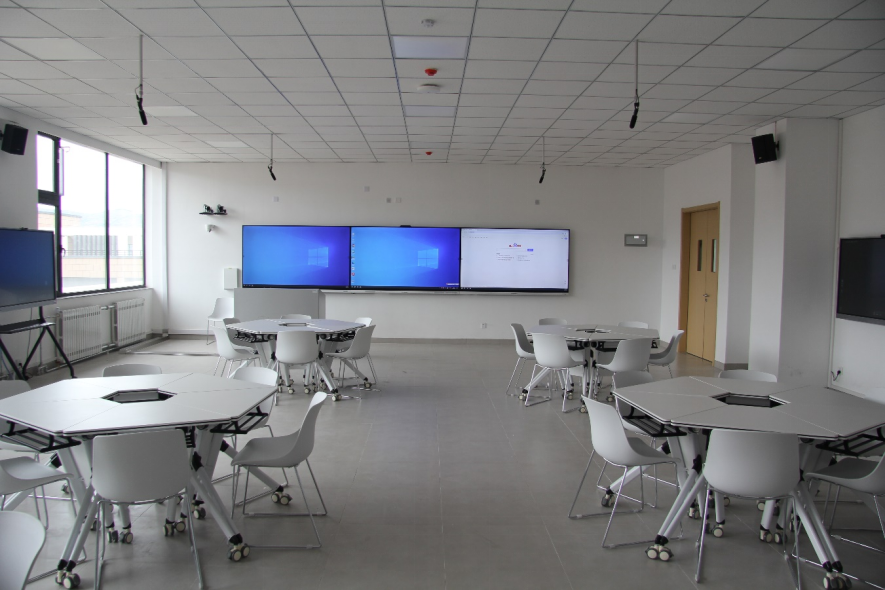 青海理工学院学思楼设智慧教室19间、标准化考场50间、综合平台指挥中心1间、校级试卷保密室1间。其中研讨型智慧教室5间,教室内配备了225寸三屏式智慧黑板、65英寸分组研讨触控屏、分组拼接桌等;普通智慧教室14间,教室内配备160寸双屏式智慧黑板、人体工学课桌椅等;标准化考场按照国家教育考试要求设置,50间教室内安装考试巡查摄像机、作弊防控器等设备;1间综合指挥平台室内安装3*6综合指挥大屏、标准化考场三合一转发管理综合平台、视讯指挥系统、作弊防控管理平台等;1间试卷保密室内安装试卷视讯指挥系统、视频监控、门禁系统等。宽敞明亮的教室及现代化的教学设备为师生提供舒适、沉浸式的教学体验,通过新型态的多功能智慧教室,让师生能够通过教学工具,实现充分的课堂交互,让学生上课听得清、看得明,老师简便操作,便于师生全身心的投入到教学活动。通过物联网及智能中控技术的软硬件支持,管理者能够远程控制、查看、维护教室,减轻日常的运维协同工作同时,为教学管理提供更加智能便捷、触手可及的应用服务。新建标准化考场网上巡查系统实现对教育考试的全局统一指挥、全程分级管理、全域实时监控,实现考生、试卷两大数据流的动态管理,实现各类考试管理指挥的一体化、可视化和即时化,使国家教育考试决策科学化、管理精准化、服务高效化迈上新的台阶。